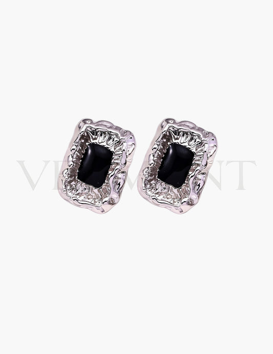 Boucles d'Oreilles Triangulaires Onyx Argent