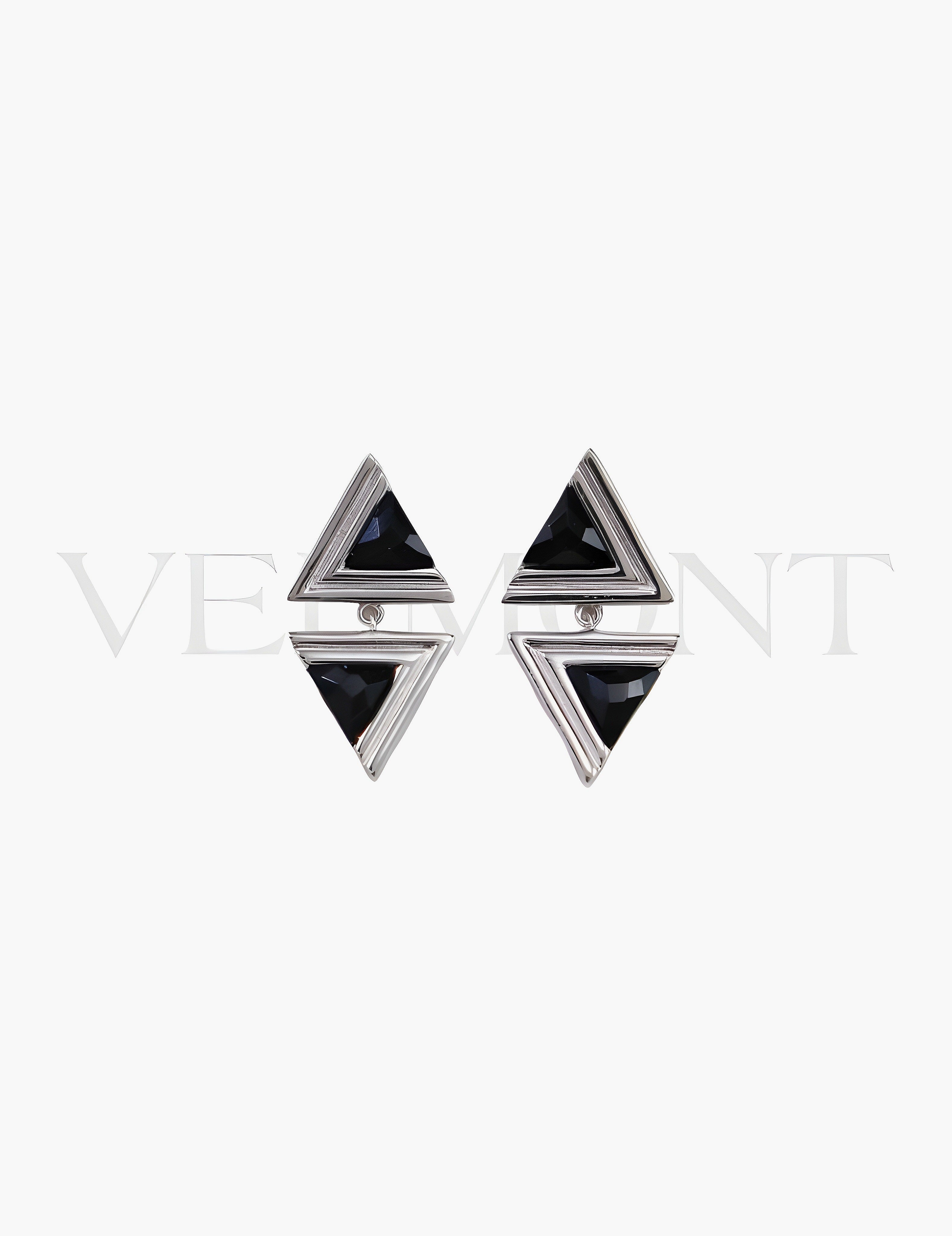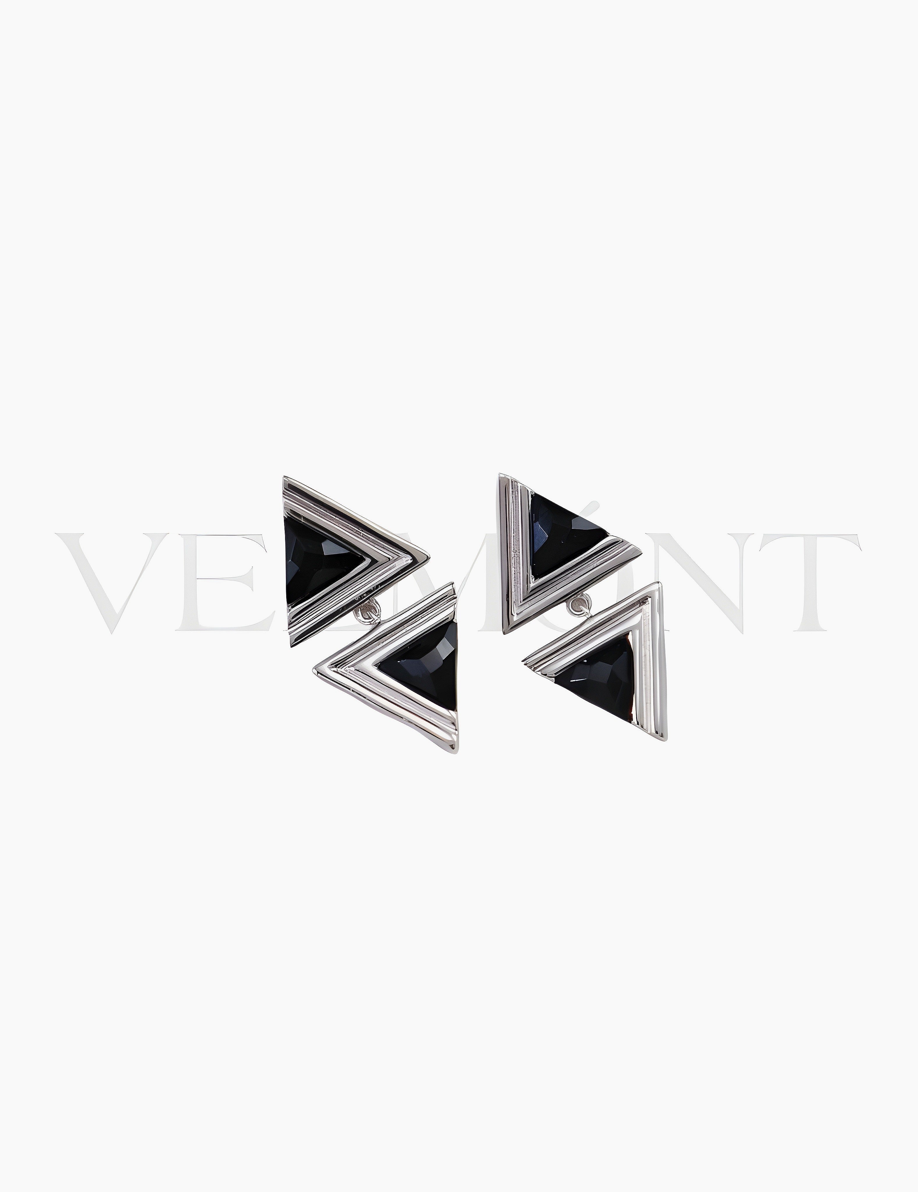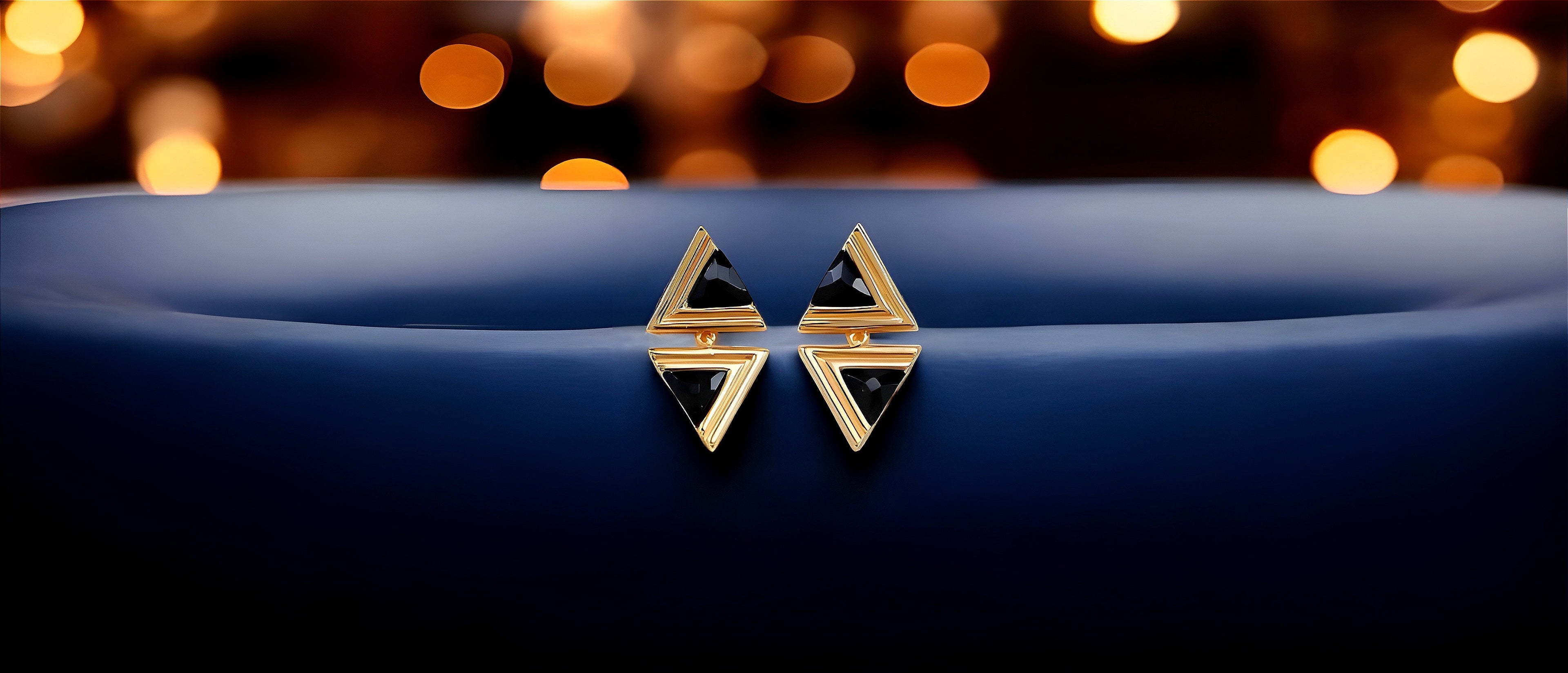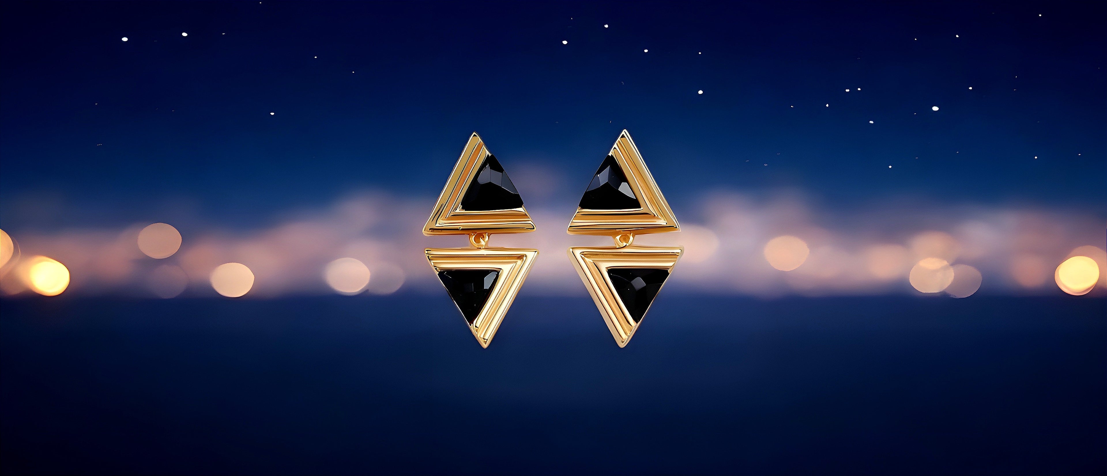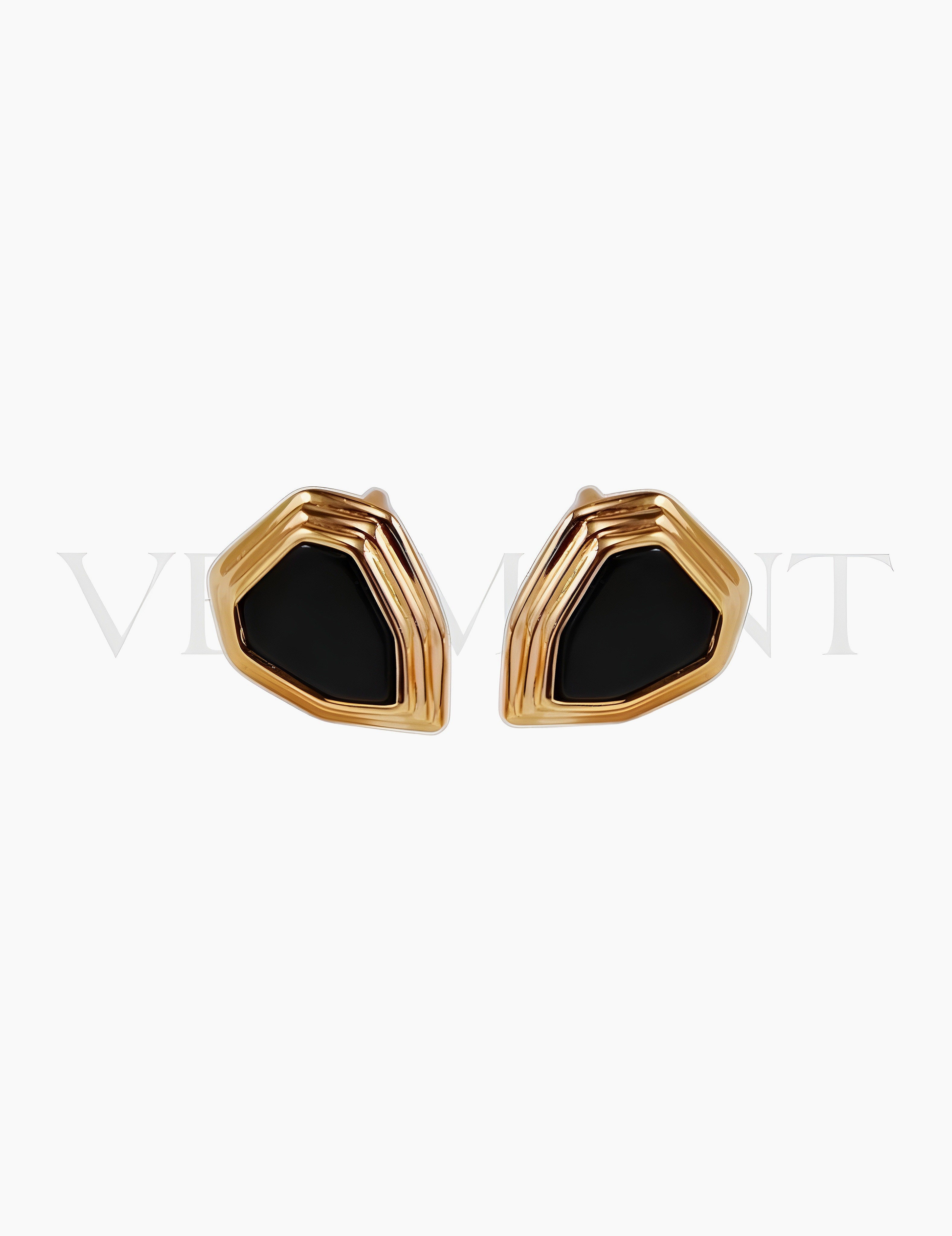 Unveiling a bold statement of contemporary elegance, these geometric earrings blend dynamic triangular shapes with the allure of Black Agate, creating a design that embodies both strength and sophistication. The structured form is accentuated by a polished gold-tone finish, celebrating architectural balance while exuding timeless charm. Ideal for those who embrace bold aesthetics, these earrings effortlessly bridge modern minimalism with luxurious flair.