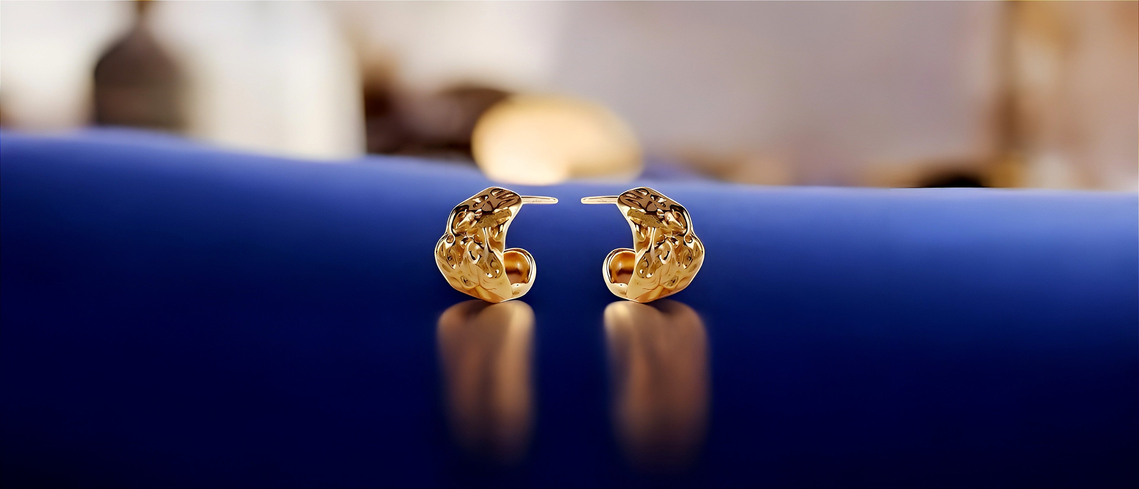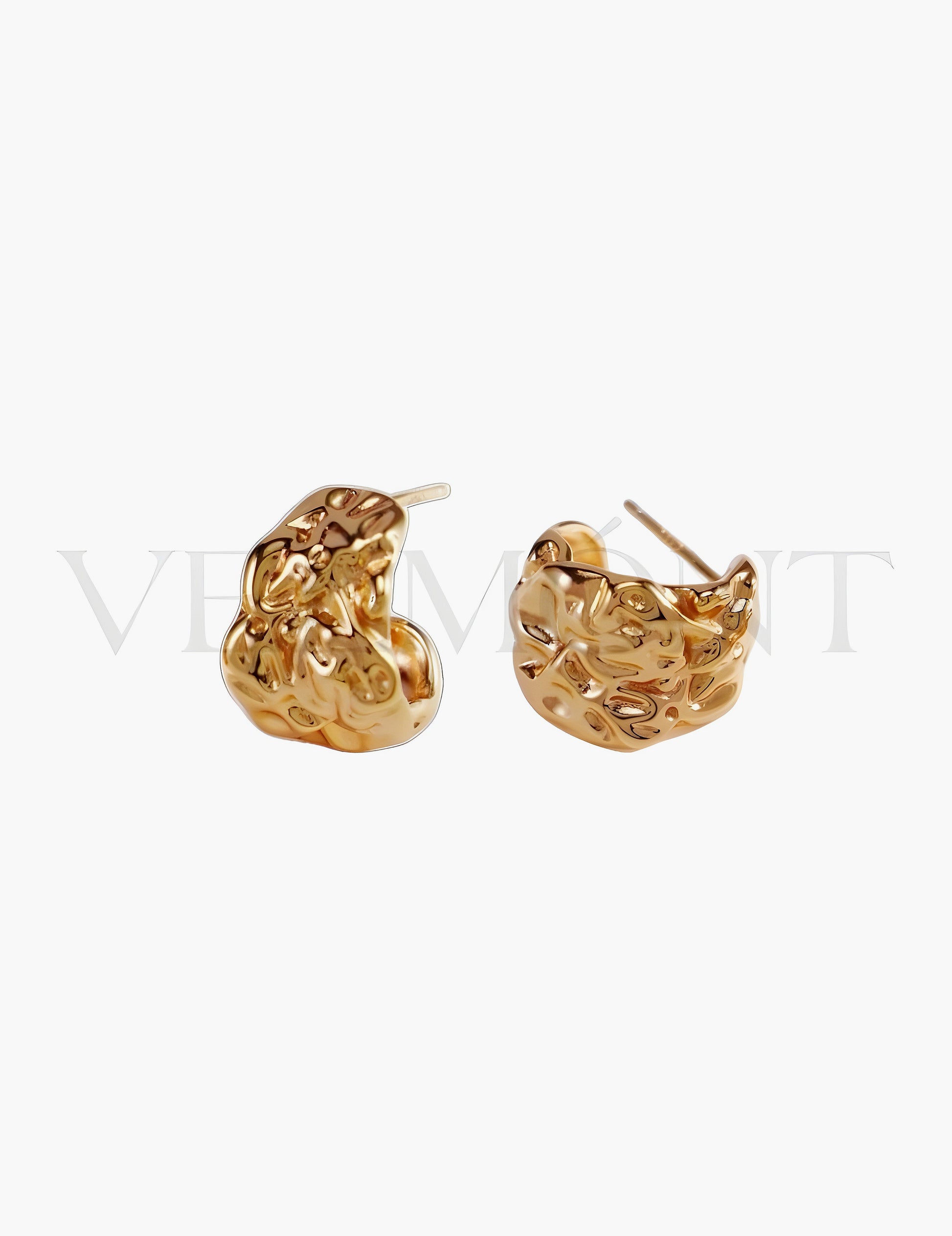 Sculptural yet timeless, these molten texture hoop earrings bring a touch of bold sophistication to any look. Crafted in sterling silver with an artisanal finish, the abstract design mimics organic flowing rock formations, creating an edgy and artistic aesthetic. The warm gold plating highlights the fluid contours, making them the perfect statement piece for day or evening wear.