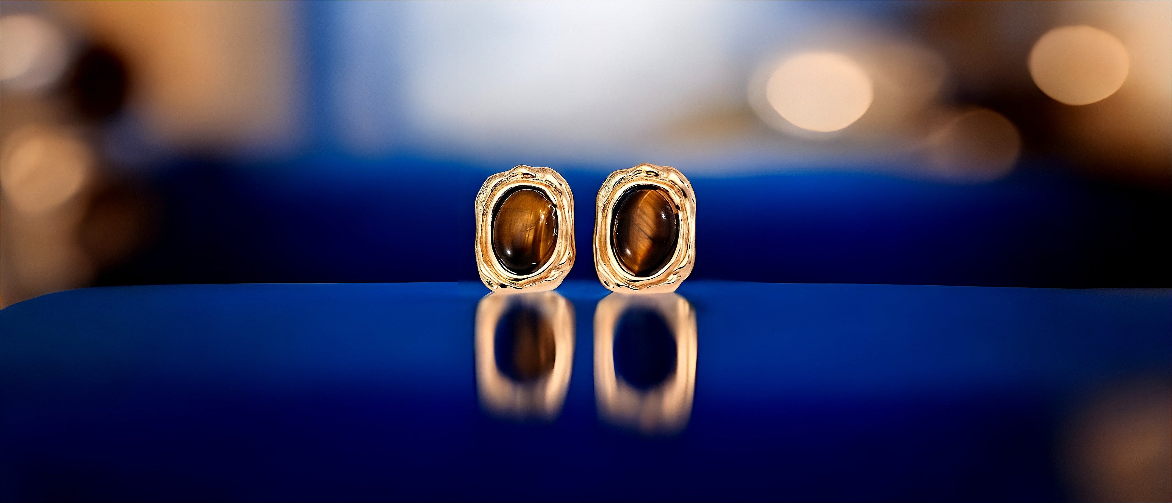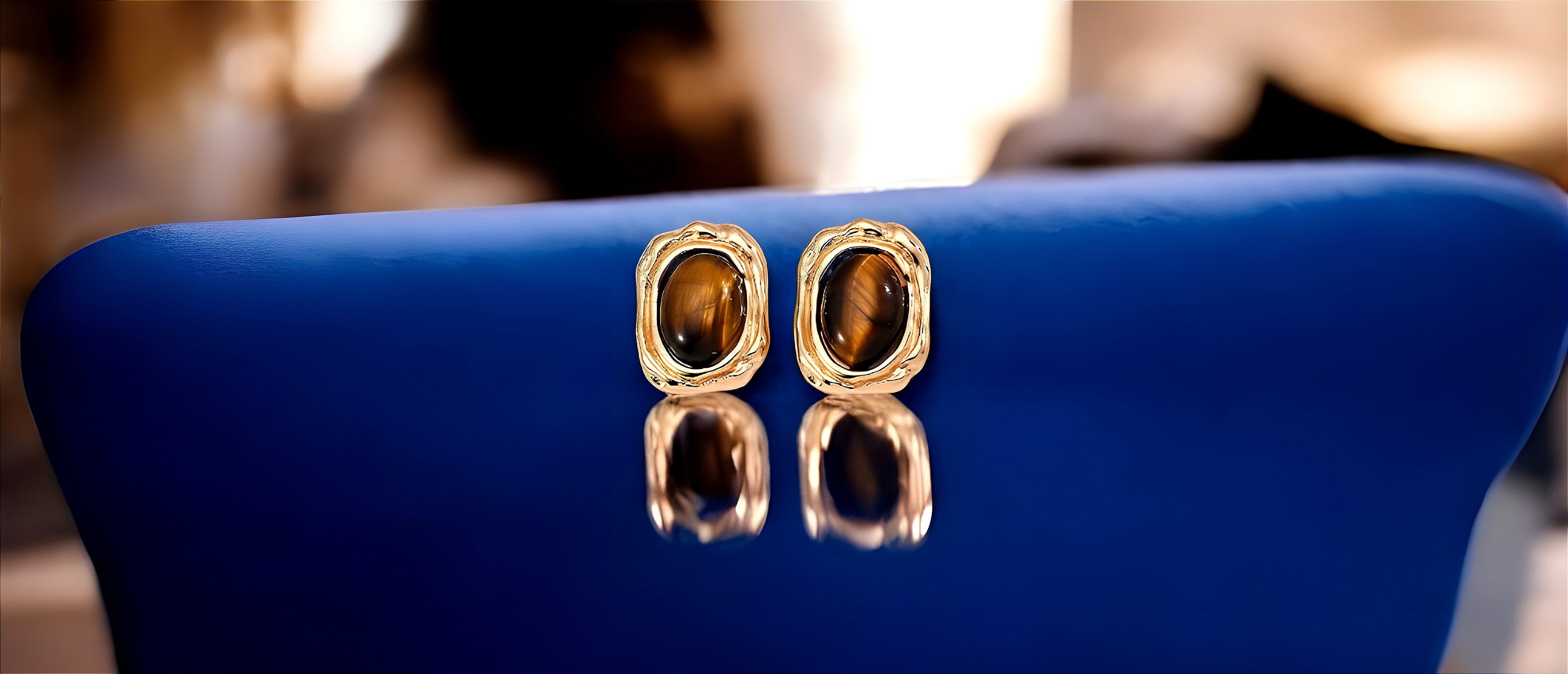 A testament to refined elegance, these vintage-inspired earrings showcase radiant natural Tiger's Eye gemstones, embraced by a textured sterling silver frame in a warm antique finish. The mesmerizing chatoyance of the tiger's eye adds depth and intrigue, while the organic contours of the design create a perfect balance of timeless luxury and artisanal mastery. Wear them as a statement of understated