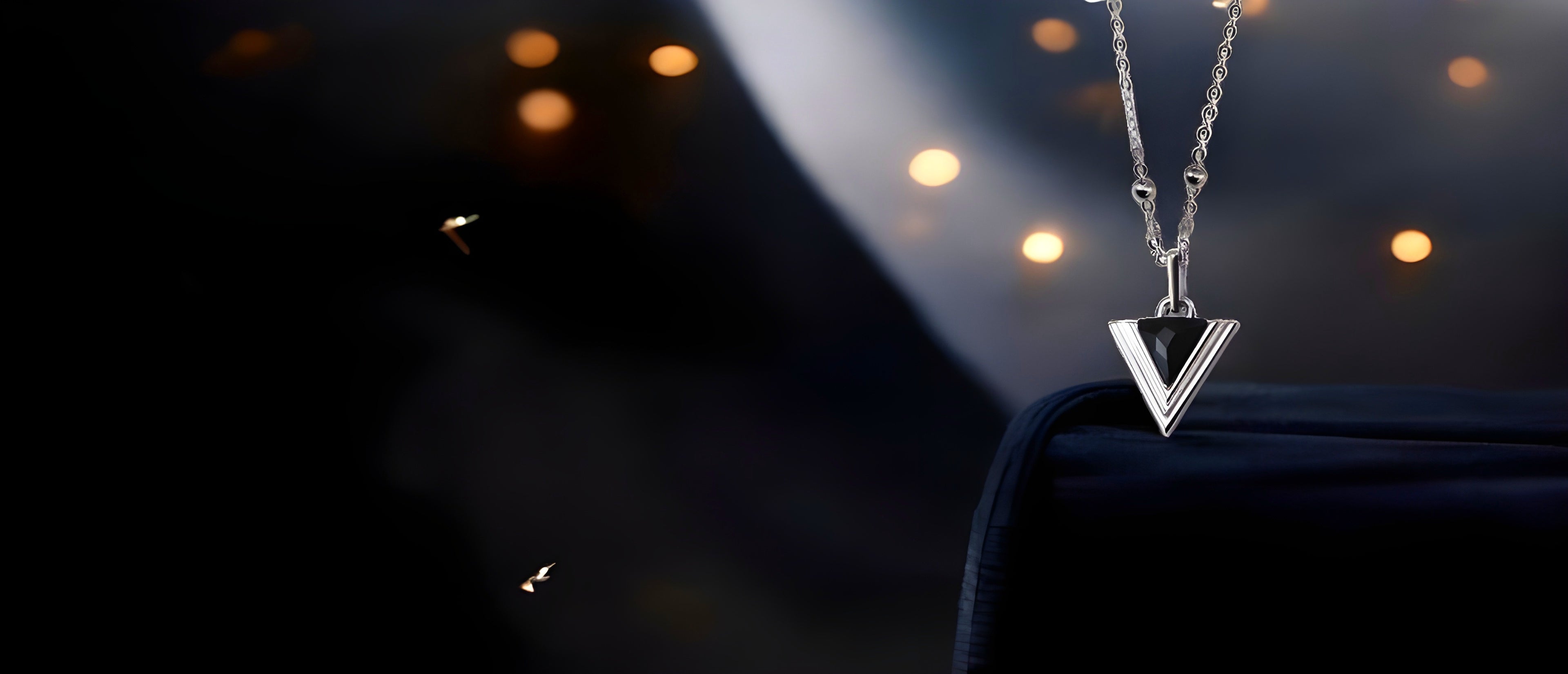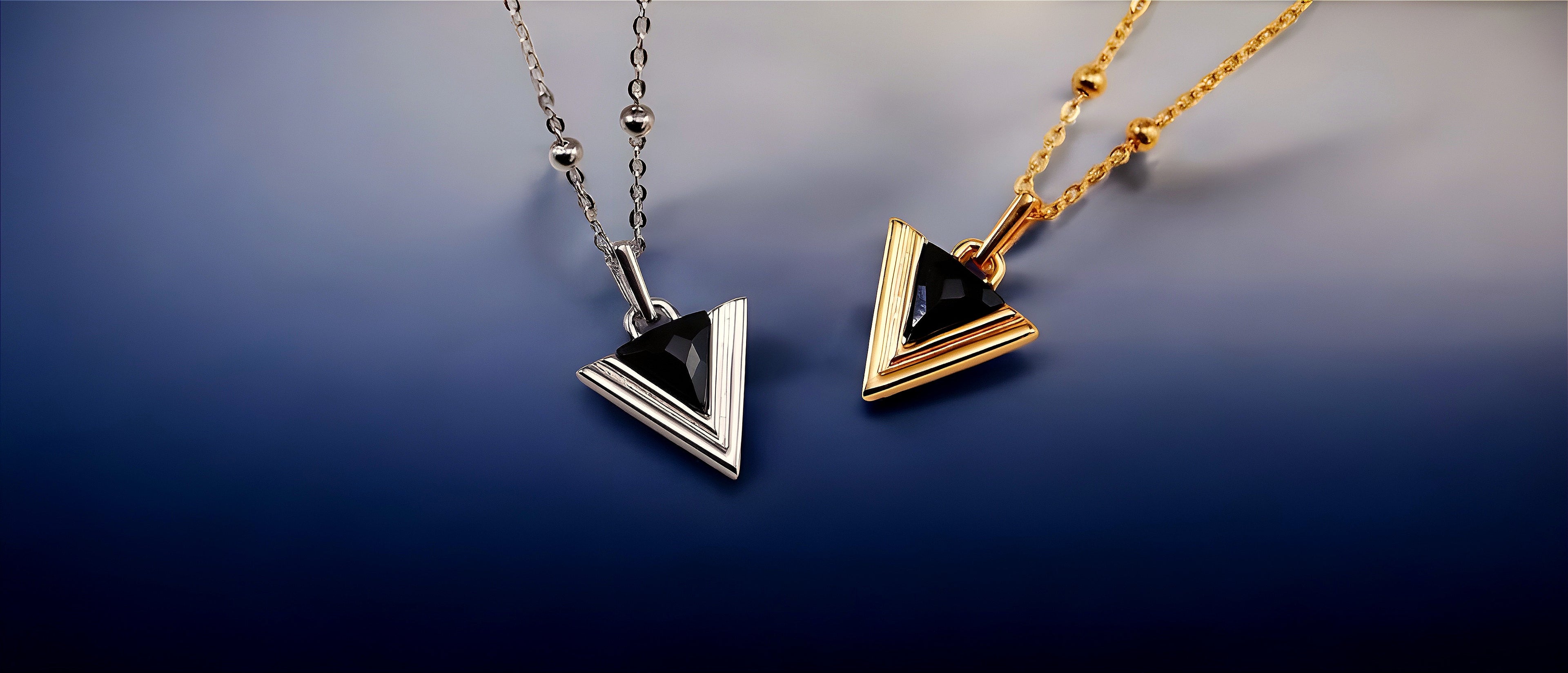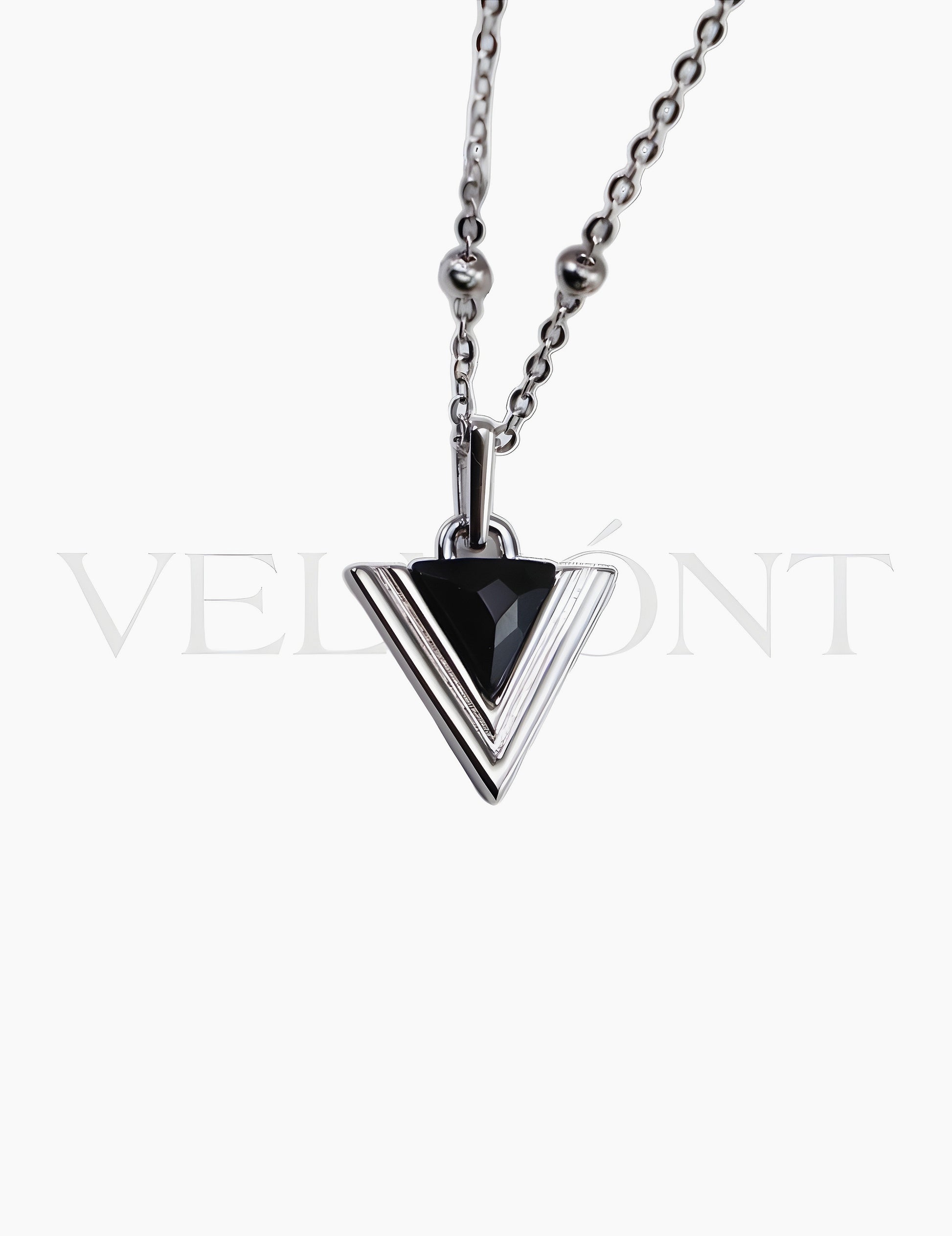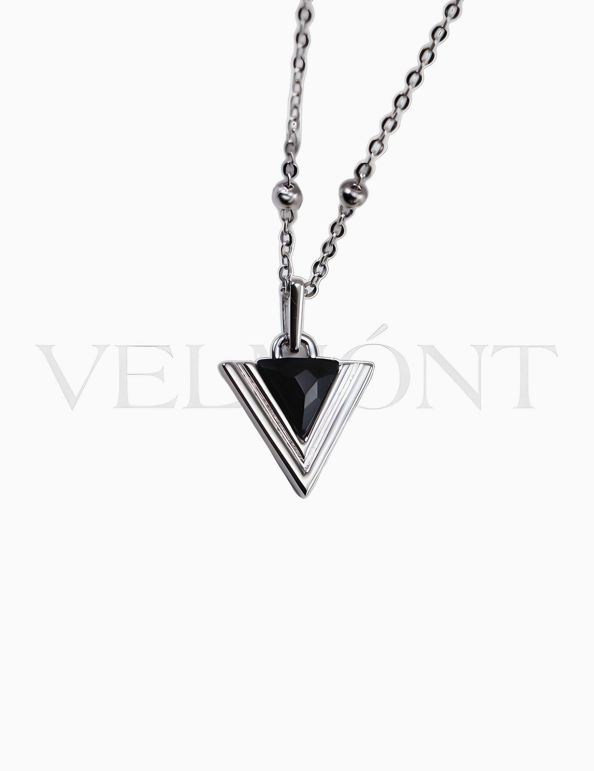 A timeless tribute to minimalistic beauty, this sterling silver necklace showcases an elegant triangle pendant featuring deep Black Agate, embodying both modernity and grace. The sterling silver chain adds a refined touch, offering a versatile piece that complements any style. Sophisticated and effortlessly chic, this design celebrates the perfect balance between simplicity and statement.